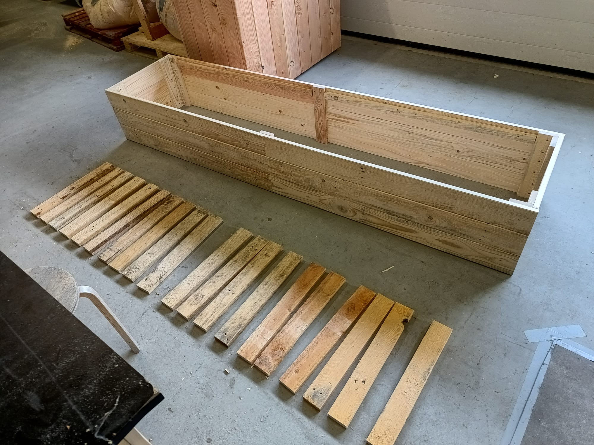 Verder is het hout van aardige kwaliteit voor wat betreft “weggooi hout”. het is een naaldsoort. Meestal vuren maar bij onze pallet zit er ook lariks en een enkele keer een douglas plank tussen. Dit is ook het grote kleur verschil wat je terug ziet in de bloembakken.